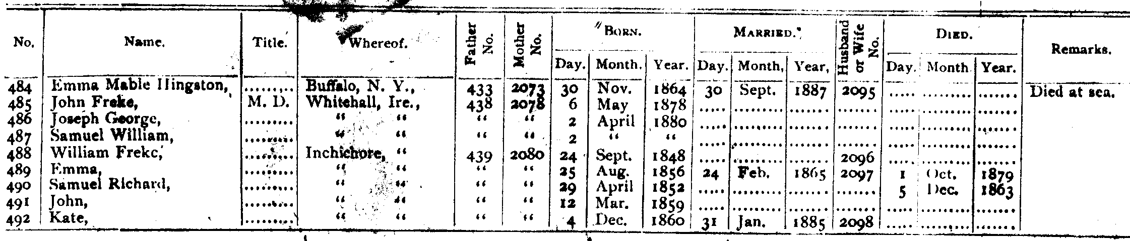 (Note that a William Freke Hingston, born Inchicore, Ireland 24 Sep 1848 is shown on the printers proof that accompanies the Vine Tree. However, we do not have confirmation about where that information comes from. CJB)